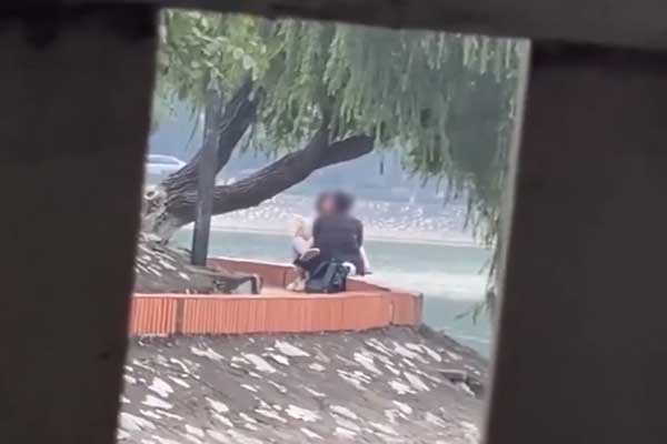Theo nội dung đoạn clip, công viên chẳng thiếu chỗ ngồi thế nhưng cặp nam nữ lại chọn tình tứ với nhau ngay trên... bờ kè của hồ nước, mặc trang phục mùa đông che kín người. Trong khi người đàn ông ngồi vắt vẻo thì người phụ nữ hết nằm rồi lại ngồi, cả 2 ôm hôn quấn quýt, cười nói vô tư như chốn không người.