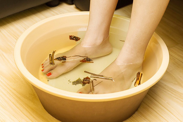 Ngâm chân trong nước lạnh khoảng 10 - 15 phút, có tác dụng giảm sưng nề hiệu quả. Nếu không thích nước lạnh, bà bầu có thể ngâm chân trong nước ấm pha một chút tinh dầu hoa oải hương hoặc hoa cúc. Ngâm xong có thể thoa tinh dầu và massage chân để giúp bạn thoải mái hơn và dễ ngủ hơn. Tuy nhiên bà bầu bị giãn tĩnh mạch chân tuyệt đối không ngâm chân với nước ấm.