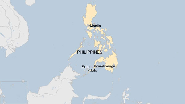 Vị trí đảo Jolo thuộc tỉnh Sulu, phía nam Philippines. Đồ họa: BBC.
