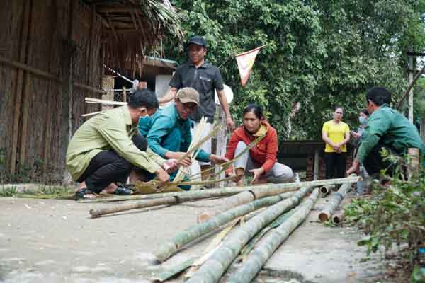 Cuối tháng 8, không khí đón chào năm học mới đã rộn ràng ở huyện vùng cao Tương Dương, Nghệ An. Tại Trường PTDTBT THCS Lưu Kiền (xã Lưu Kiền, huyện Tương Dương) đông đảo phụ huynh từ các bản làng xa xôi mang theo nứa, mét, mái cọ đến tu sửa nhà ở bán trú cho con em.