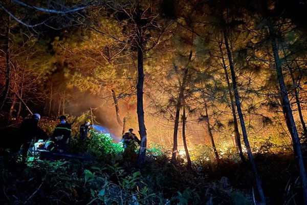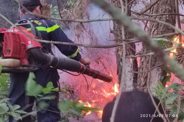 Khu vực rừng bị cháy nằm ngay sát khu vực dân sinh; song song với công tác chữa cháy, đơn vị triển khai phun nước hỗ trợ các lực lượng tham gia chữa cháy và bảo vệ khu vực nhà dân.