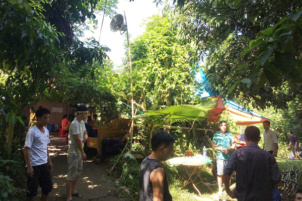 Người dân đang làm các thủ tục án táng cho chị Hương