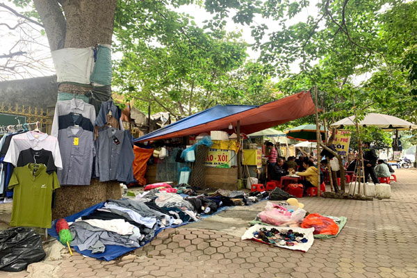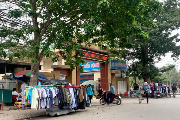 Trước cổng bệnh viện Y học cổ truyền Nghệ An (đường Tuệ Tĩnh, TP. Vinh), người dân bày bán quần áo, các mặt hàng ngay trước cổng bệnh viện.
