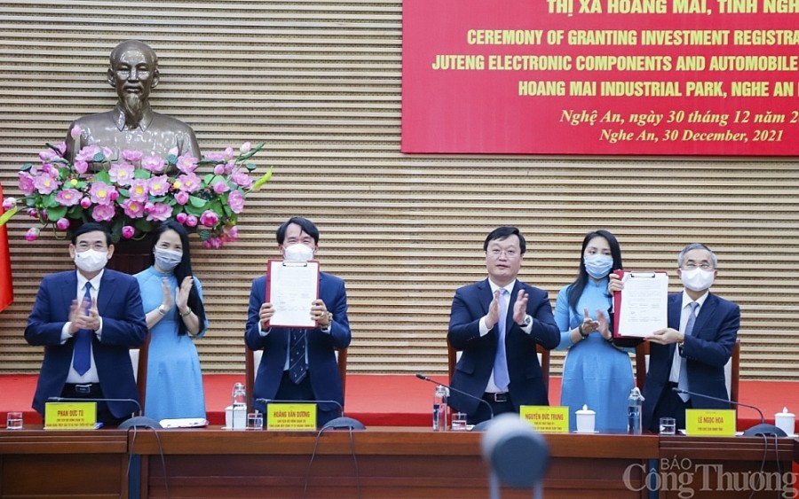 Trong quý I/2022, Nghệ An là địa phương đứng trong Top đầu của cả nước về thu hút FDI (trong tháng 01/2022 đứng thứ 2 cả nước, chỉ sau Hà Nội). Tính từ đầu năm đến ngày 22/2/2022, Nghệ An đã cấp mới giấy chứng nhận đăng ký đầu tư cho 16 dự án với tổng số vốn đăng ký là 954,67 tỷ đồng. Điều chỉnh 12 lượt dự án, trong đó điều chỉnh tổng vốn đầu tư 5 dự án với số vốn tăng lên 9.292,24 tỷ đồng, nâng tổng số vốn cấp mới và tăng thêm là 10.246,91 tỷ đồng. Đến thời điểm này Nghệ An đã có 102 dự án FDI còn hiệu lực với tổng vốn đăng ký 2.077,3 triệu USD.