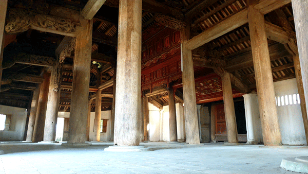 Đình Hoành Sơn có 5 gian chính, 2 chái, 8 vì, 36 cột (16 cột cái, 20 cột phụ)