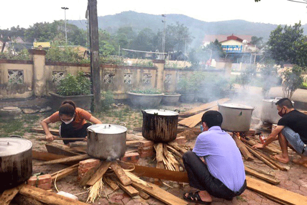 Bà con miền núi xứ Nghệ tất bật nấu bánh chưng tặng khu cách ly