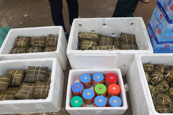 Gần 200 chiếc bánh chưng đã gói, nấu chín rồi chuyển vào khu cách ly