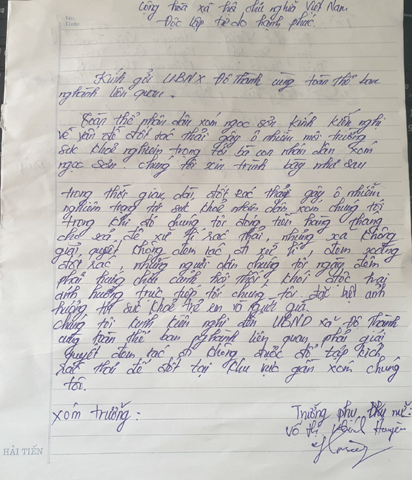 Đơn kêu cứu của cư dân xóm Ngọc Sơn