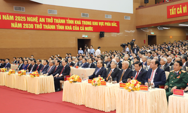 “Đại hội lần thứ XIX của Đảng bộ tỉnh Nghệ An là Đại hội thể hiện ý chí, khát vọng vươn lên mạnh mẽ hơn của toàn Đảng bộ, lực lượng vũ trang và nhân dân tỉnh nhà để xây dựng Đảng bộ và hệ thống chính trị tỉnh nhà trong sạch, vững mạnh; Chủ động đổi mới sáng tạo, đưa Nghệ An phát triển nhanh và bền vững, phấn đấu đến năm 2025 Nghệ An trở thành tỉnh khá trong khu vực phía Bắc, năm 2030 trở thành tỉnh khá của cả nước như di nguyện thiêng liêng của Chủ tịch Hồ Chí Minh. Đó cũng là mong muốn của Trung ương, của đồng bào, đồng chí cả nước đối với Nghệ An, quê hương Bác Hồ kính yêu”, Chủ tịch UBND tỉnh Nguyễn Đức Trung khẳng định.