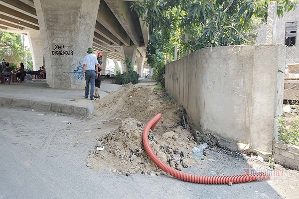 Khu vực nhóm công nhân thi công hệ thống cáp ngầm cạnh bờ rào nhà anh Hoàng