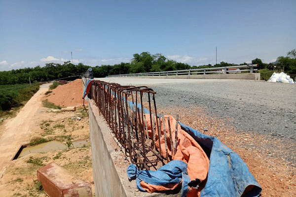 “Năm 2017 người dân cứu được người và xe máy bị lũ cuốn trôi ở tràn. Khi bắt đầu làm cầu dân rất vui vì giờ bão lụt cũng không bị cô lập nữa. Trước Tết vừa qua, công nhân có đổ đất hai bên đầu cầu cho dân đi nhưng lâu nay không thấy công nhân làm nữa. Máy móc cũng nằm im một chỗ, sắt thép hai bên đầu cầu gỉ sét hết”, một người dân sống gần đó cho biết.