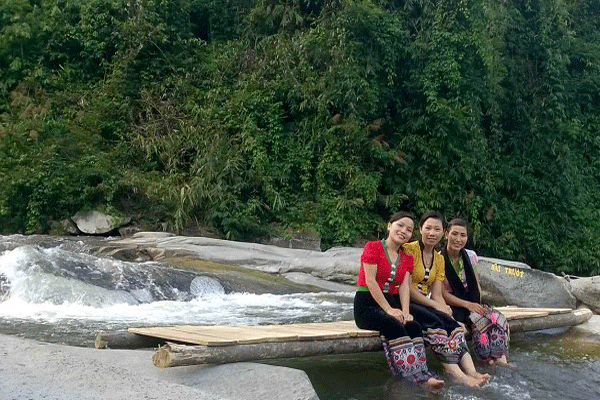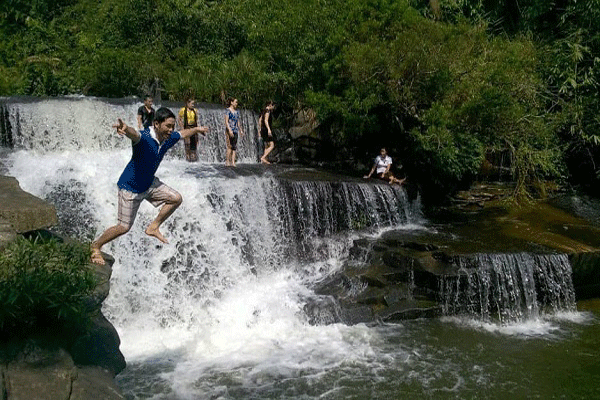 Du khách thích thú tắm Thác Ba tầng ở bản Ná Xái, xã Hạnh Dịch đẹp nên thơ