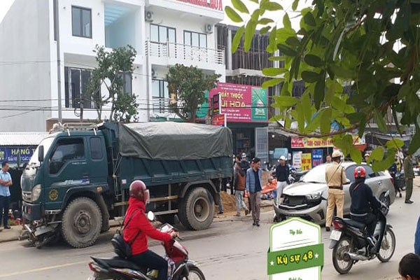 Theo đó, vào thời gian trên, chiếc xe 5 chỗ (chưa rõ biển số) đang lao từ khuôn viên bệnh viện ra quốc lộ 48 đã đâm ngang xe tải BKS: 37C 09475 lưu thông từ Tây Hiếu lên thị xã. Cú đâm ngang khá mạnh khiến xe tải mất lái lao sang phải “lùa” hai xe máy đang dừng bên kia đường vào gầm cán nát bét.