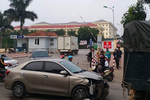 Chiếc xe 5 chỗ lao nhanh trong bệnh viện ra quốc lộ 48 thiếu quan sát đã tông ngang vào xe tải trước cổng bệnh viện khiến xe này mất lái “lùa” hai xe máy vào gầm gây nên vụ tai nạn liên hoàn khiến 4 xe hư hỏng.