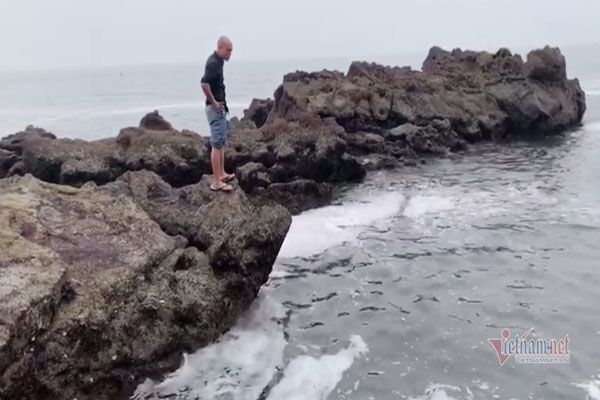 Anh Sơn đứng trên bờ quan sát con cá bơi ra xa ở vùng biển Nghệ An