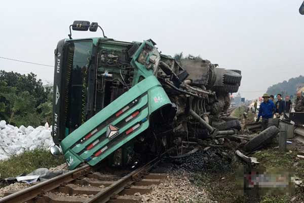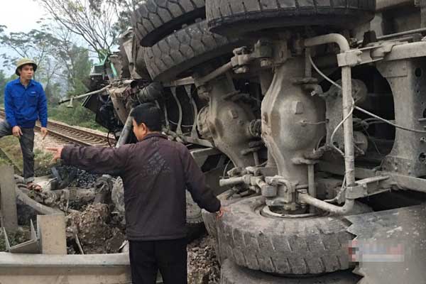 Vụ tai nạn khiến toàn bộ đá trắng trên xe tải đổ xuống sát đường sắt, xe tải hư hỏng nặng. Đặc biệt, vụ TNGT đã khiến đường sắt bị tê liệt hoàn toàn hơn 4 tiếng đồng hồ.