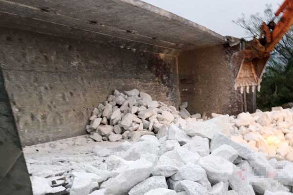 Chiếc xe tải chở đá trắng lật úp trên đường tàu hư hỏng nặng