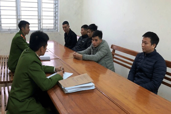 Các đối tượng tại Công an thị xã Kỳ Anh.