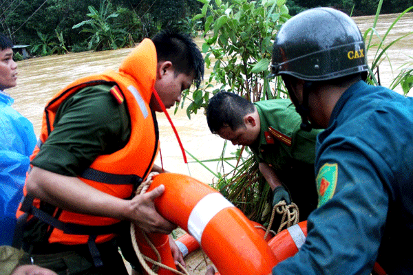 Thiếu tá Arất Huỳnh Bách, cán bộ Công an H.Tây Giang, người trực tiếp tham gia công tác ứng cứu, cho biết do khu vực nhà dân nằm trong vùng trũng thấp, chủ yếu là đồng ruộng nên dòng lũ chảy xiết. Tình thế đó gây rất nhiều khó khăn cho việc ứng cứu. Phương án đầu tiên là dùng phao để bơi qua sông đã không khả thi, lực lượng cứu hộ phải giăng đường dây để đu qua. Nhưng vì khoảng cách khá rộng, việc qua sông là điều không hề dễ dàng. “Bằng cách đu theo đường dây, lực lượng cứu hộ đã tiếp cận được người dân bị mắc kẹt, rồi dùng dây đưa sang bờ an toàn. Ngoài ra, chúng tôi còn kịp thời hỗ trợ cứu 2 người dân khác có nguy cơ bị trôi do nước lũ chảy xiết”, thiếu tá Bách nói.