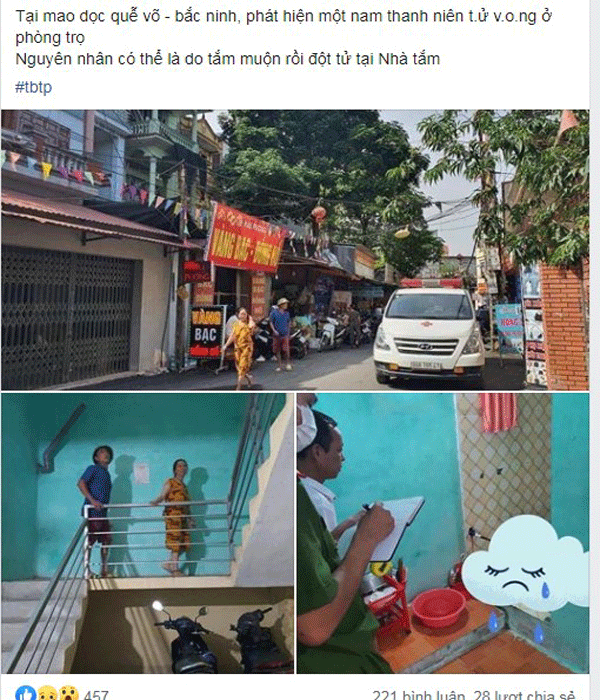 Nam thanh niên được xác định đã không qua khỏi trong khu phòng trọ. Bài viết này còn nhấn mạnh việc thanh niên ra đi là do tắm đêm rồi đã đến cảm lạnh, nam thanh niên được phát hiện vẫn ở trong nhà tắm. Không có ai để ý nên đã ra đi sáng mới phát hiện ra