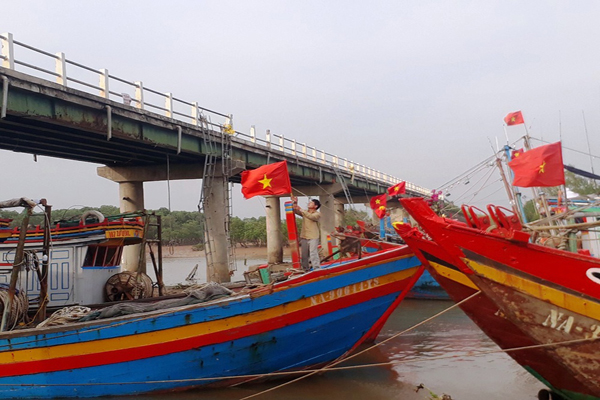 Ngư dân xã Diễn Bích chằng chéo tàu thuyền gây hư hỏng cầu Diễn Kim