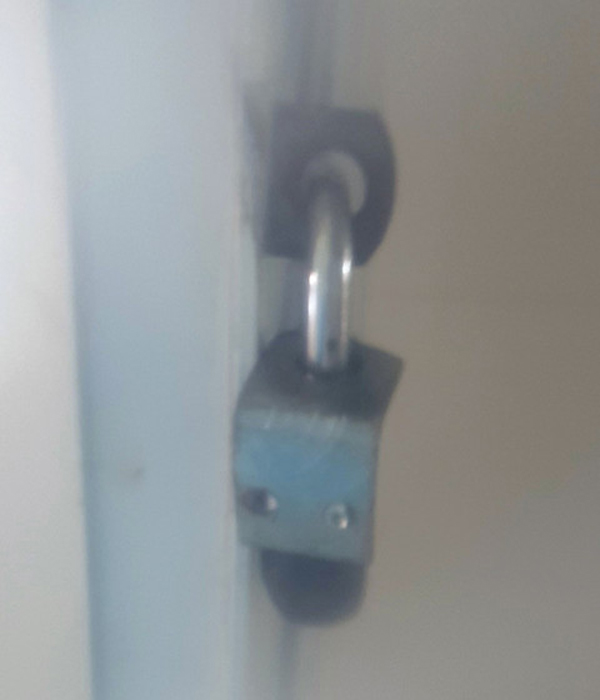 Bộ phận gắn vào cửa để móc ổ khóa vào bị bật ra nên cửa bị bung ra.