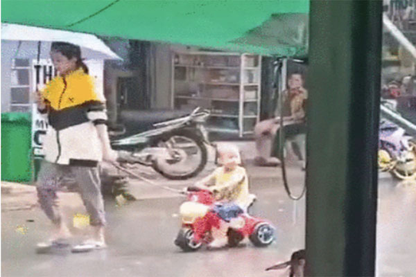 Cụ thể, clip này do 1 người đi đường quay lại. Hai nhân vật chính là 1 người phụ nữ và 1 đứa trẻ tầm 3-4 tuổi. Chị gái kia tay cầm ô, dắt theo đứa trẻ đang ngồi trên xe đẩy. Tuy nhiên, thay vì che ô cho cả hai để không ai bị ướt thì người phụ nữ này chỉ che cho mỗi mình, bỏ mặc đứa trẻ dầm mưa ướt như chuột lội.