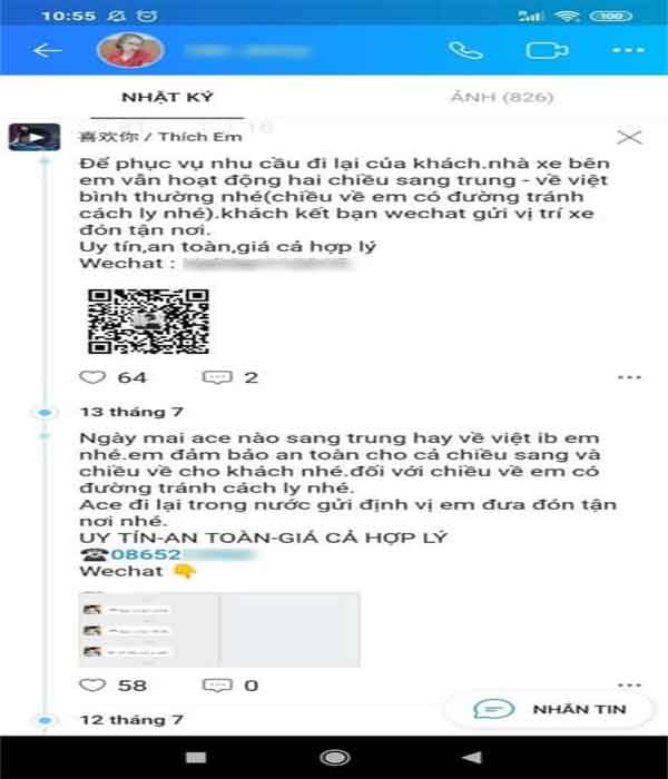 Nhận chở khách từ Trung Quốc về Việt Nam “bao tránh cách ly 14 ngày”.