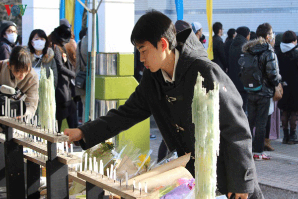 Thắp hương tưởng niệm các nạn nhân trong thảm họa kép 11/3. Ảnh: Bùi Hùng