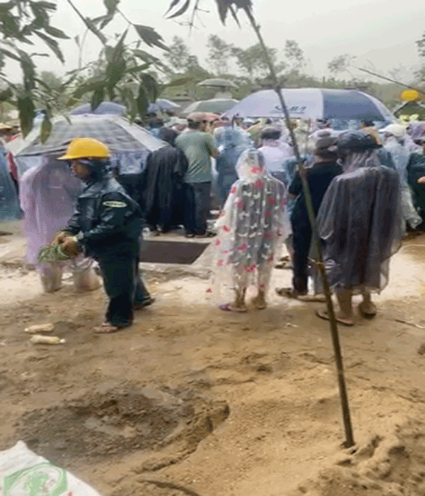 Sáng 16/10, lễ đưa tang 2 mẹ con chị Hoàng Thị Phượng diễn ra tại quê nhà. Nhiều bà con, hàng xóm có mặt tiễn đưa mẹ con chị lần cuối. Bên ngoài, trời vẫn đổ cơn mưa nặng hạt.