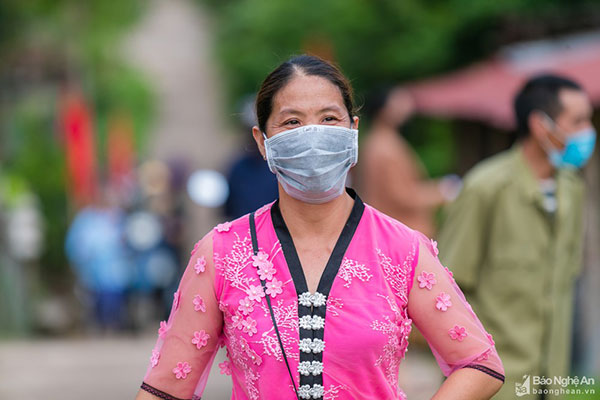 Khi đến điểm bầu cử ai cũng chấp hành đeo khẩu trang để phòng, chống dịch. Ảnh: Đức Anh