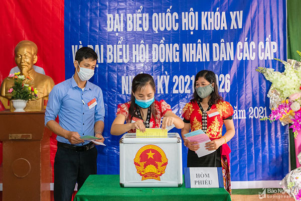Đến 9 giờ ngày 21/5, công tác bầu cử tại xã Mai Sơn (Tương Dương), xã miền núi, biên giới của tỉnh Nghệ An đã cơ bản hoàn thành. Các cử tri đi bầu cử đều phấn khởi và kỳ vọng các đại biểu mà mình gửi trọn niềm tin sẽ hoàn thành tốt nhiệm vụ trong nhiệm kỳ này. Ảnh: Đức Anh