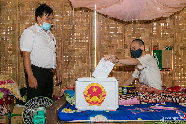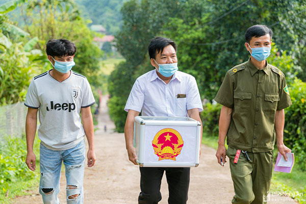 Những cử tri không thể đến điểm bỏ phiếu sẽ được tổ bầu cử mang hòm phiếu di động đến tận nhà. Ảnh: Đức Anh