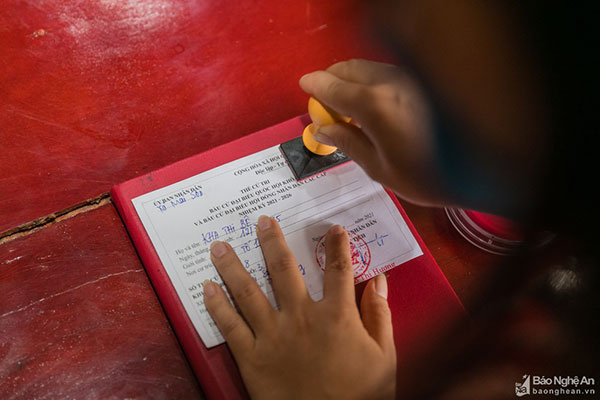 Từ sáng sớm các cử tri bản Huồi Tố 1, xã Mai Sơn (Tương Dương) đã cùng nhau đi bỏ phiếu. Người dân ở đây chủ yếu là đồng bào dân tộc Thái. Từ người già đến các bạn trẻ ai cũng đều mang tâm trạng hào hứng khi được cầm trên tay lá phiếu bầu.