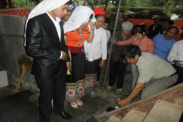 Tiếp đó, chú rể đưa cô dâu về nhà mình, trước khi bước lên cầu thang thì mẹ chồng đã chờ sẵn cùng với một chậu đồng đựng nước suối trong suốt có ngâm một đồng xu bằng bạc. Mẹ chồng đã kỳ công rửa chân cho con dâu và trao tặng một vòng bạc cầu may. Tiếp theo, đại diện một người bên nhà trai sẽ đưa cô dâu vào buồng, làm lễ ăn cơm, uống rượu chung với chồng. Đồng thời, trong mâm có hai khúc mía tượng trưng cho tình yêu ngọt ngào, một quả trứng luộc xẻ đôi chia cho đôi vợ chồng cùng ăn. Sau đó tân lang và tân nương sẽ trao vòng bạc cho nhau. Cũng từ đây, cô dâu chính thức trở thành người nhà chú rể./.