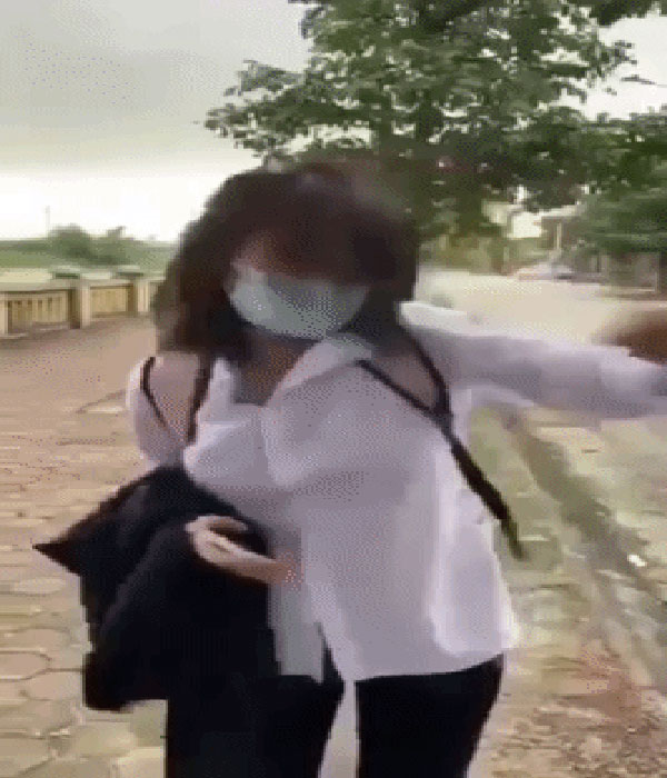 Đến cuối clip, một bác trung niên qua đường đã yêu cầu cô gái áo đen dừng tay và giải tán đám đông. "Không được đánh bạn như thế, bọn nó quay clip đăng lên mạng là công an bắt mày đấy" - bác trung niên can gián.