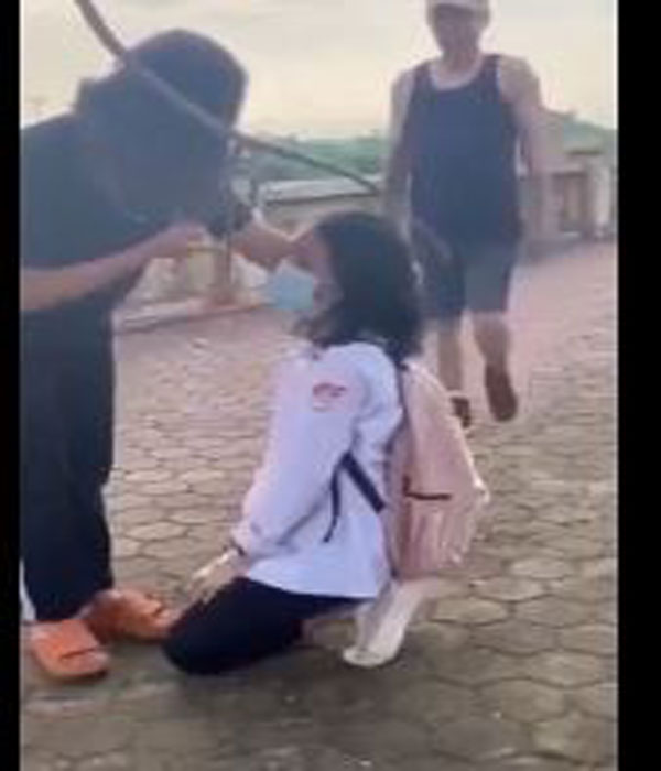 Nữ sinh bị nhiều cô gái thay nhau đánh tát trên đường phố, chửi mắng với nhiều lời lẽ thậm tệ. Đến cuối cùng nữ sinh này đã phải quỳ gối xin lỗi nhưng vẫn bị giật tóc và tát nhiều cái vào mặt.