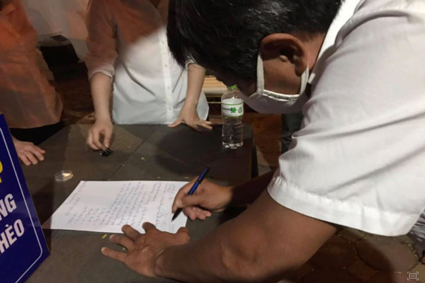 Ông Đoàn Ngọc Hải ký vào biên bản kiểm đếm tiền quyên góp ở Hà Nội.