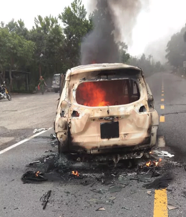 Sau tiếng nổ lớn, chiếc ôtô mang biển kiểm soát tỉnh Gia Lai bốc cháy ngùn ngụt, 2 người ngồi trên xe t.ử vo.ng.