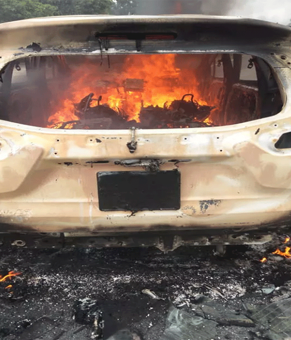 Do khu vực xảy ra vụ cháy thuộc địa bàn vùng cao, không có các phương tiện chữa cháy nên việc chữa cháy gặp nhiều khó khăn. Khi lực lượng chức năng nhận tin báo đến hiện trường thì chiếc xe bị cháy gần như trơ khung. 2 người ngồi trong xe đã không thể thoát được ra ngoài nên đã t.ử vo.ng.