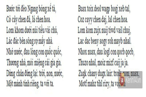 Tác phẩm”Qua Đèo Ngang” khi được viết lại bằng kiểu chữ Việt Nam song song 4.0