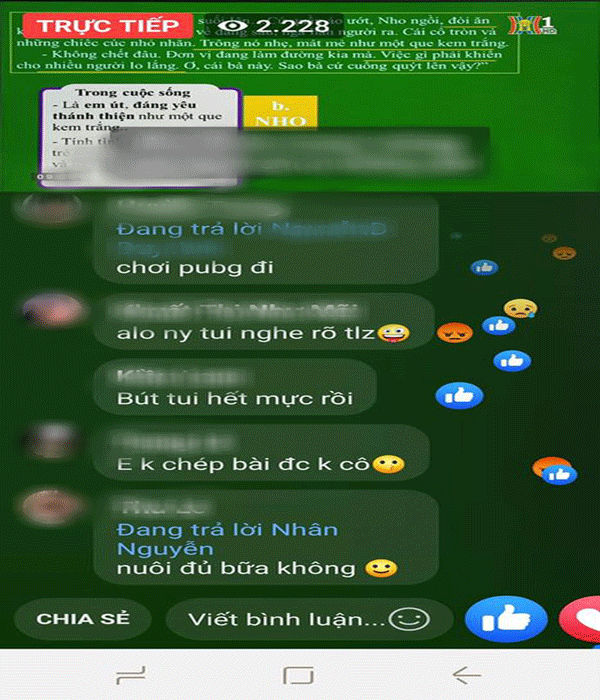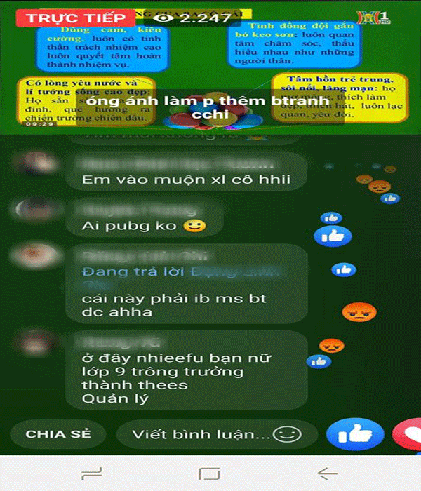 Trong một tiết giảng truyền hình môn Văn lớp 9, nhiều học sinh đã liên tục bình luận tục tĩu, phản cảm với mục đích phá lớp online đang dạy.