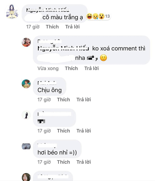 "Cấp 2 đang tuổi dậy thì nên muốn chứng minh sự trẩu của mình đấy mà. Lên cấp 3 chín chắn hơn sẽ không có nhiều bình luận phản cảm thế này đâu. Đến chán với mấy bình luận vô văn hóa này quá", bạn T.N chia sẻ.