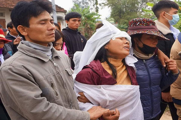 Hung tin đau đớn khiến chị Trần Thị Hiền (37 tuổi, vợ anh Phượng) không còn đứng vững. Giữa đám tang mịt mù khói hương, người phụ nữ ấy lết từng bước khóc thảm thiết: “Sao anh lại bỏ mẹ con em ra đi như vậy. Anh đi rồi mẹ con em phải sống như thế nào đây? Các con còn nhỏ quá anh ơi”.