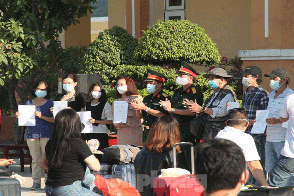 Những người được cách ly tại trường Quân sự Quân đoàn 4 về từ các nước Hàn Quốc, Trung Quốc, Đài Bắc, Canada, Ý… di chuyển bằng đường hàng không về Cảng hàng không quốc tế Tân Sơn Nhất (TP.HCM) rồi về Bình Dương theo phân bổ từ Quân khu 7.