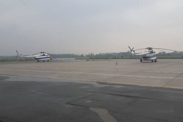 Trực thăng sẵn sàng nhận lệnh điều động tham gia cứu hộ. Ảnh: Đình Thành.