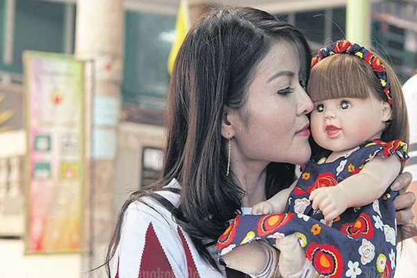 "Bố mẹ" và búp bê Kumanthong. Ảnh: Bangkok Post