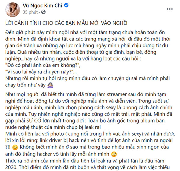 Ngoài ra streamer Kim Chi cũng lên án những hành động thiếu chuyên nghiệp trong công việc của nhiều nhiếp ảnh gia. Cô nàng cũng mong rằng sẽ không còn streamer nữ nào phải là nạn nhân của những vụ việc phát tán ảnh nóng tương tự.