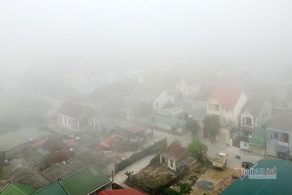 Nhiều ngôi nhà chỉ cách khoảng 60m đã thấy chìm trong sương mù