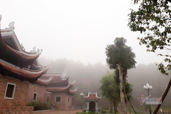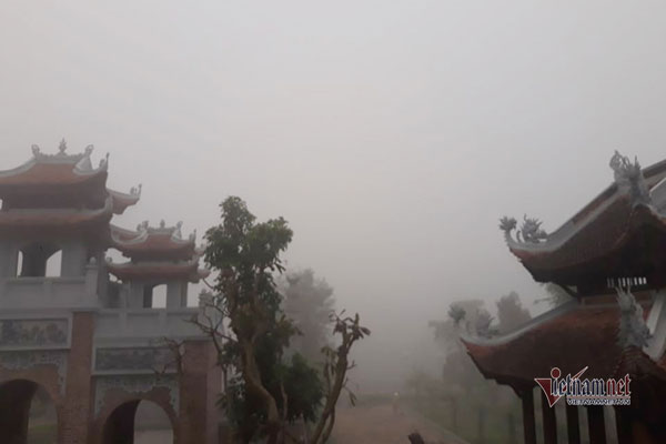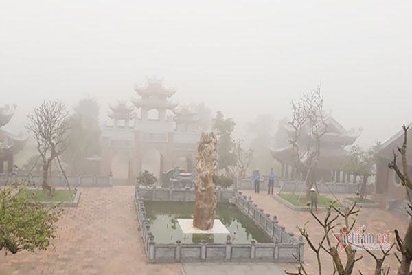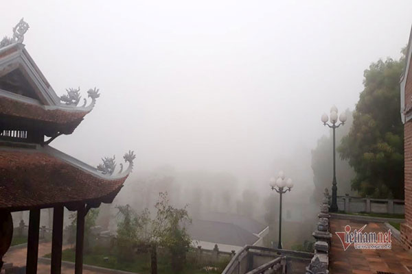 Ngôi đền lúc 8h sáng, sương mù vẫn còn dày đặc, tầm nhìn xa hơn 30m